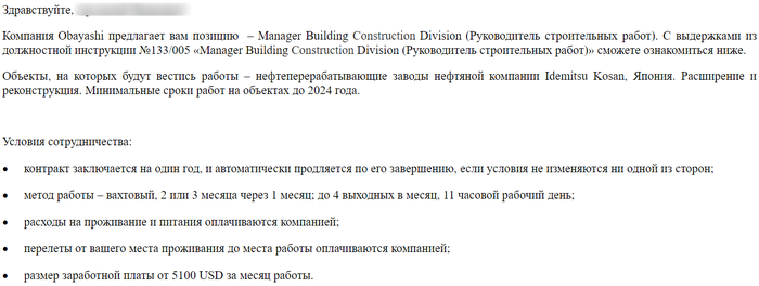 Через два дня еще письмо, с другого адреса. Обращаются по имени, письмо вроде грамотно составлено и должностная инструкция приложена на русском и на английском, все по теме