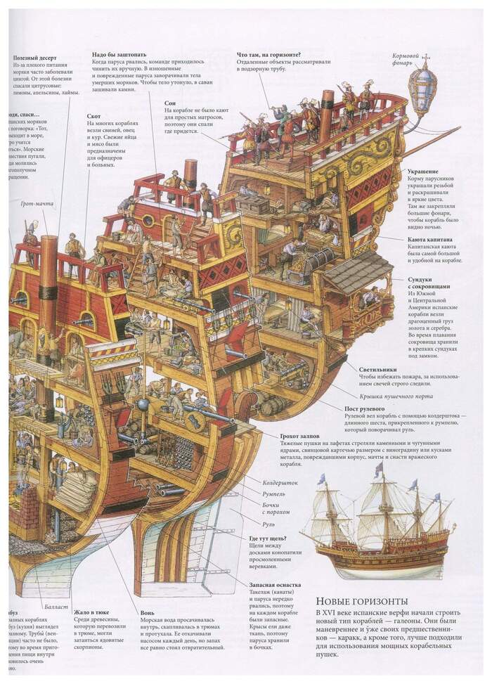 Пришибло, размазало и смыло нафиг волной ностальгии. Была в нашей городской детской библиотеке потрясающая книга художника Стивена Бисти "Чудесные сечения". И вот одна из ее страниц с описанием Галеона.