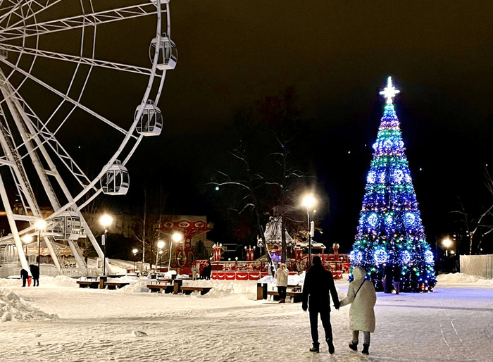 Будет ли он там сейчас - под вопросом. Я синоптерам давно уже не верю. Пока остается полюбоваться прежней роскошью. В новогоднюю ночь в ВЛ две главные точки притяжения - главная площадь города и парк аттракционов на набережной.