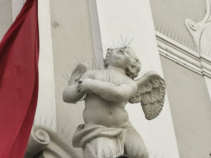 Питерский художник нанес на строительный забор, за которым должны были строить ТЦ, граффити, против проекта храма на этом месте. Что тут скажешь? "Две иконы, среднюю свечку и 0.5 святой воды". (Надеюсь ничьи чувства не оскорбил).