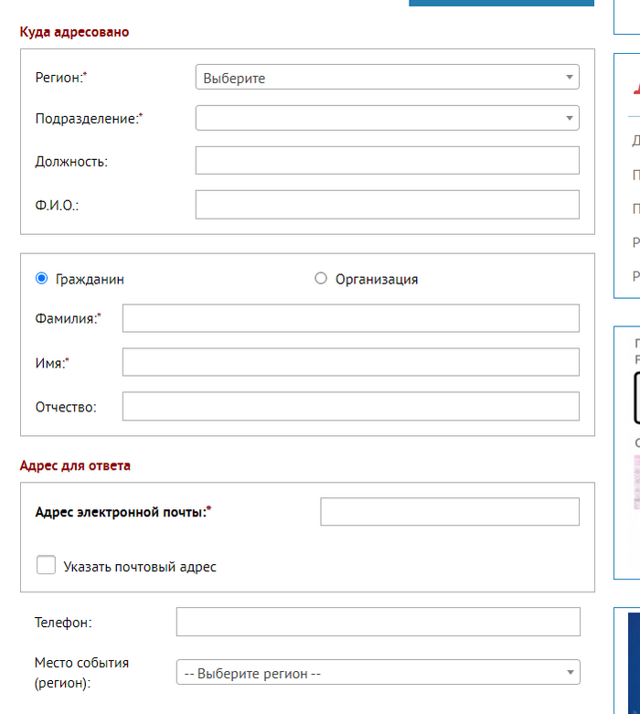 Заполняем поля, адрес для ответа я обычно ставлю свою почту. Почтовый адрес ниразу не указывал.