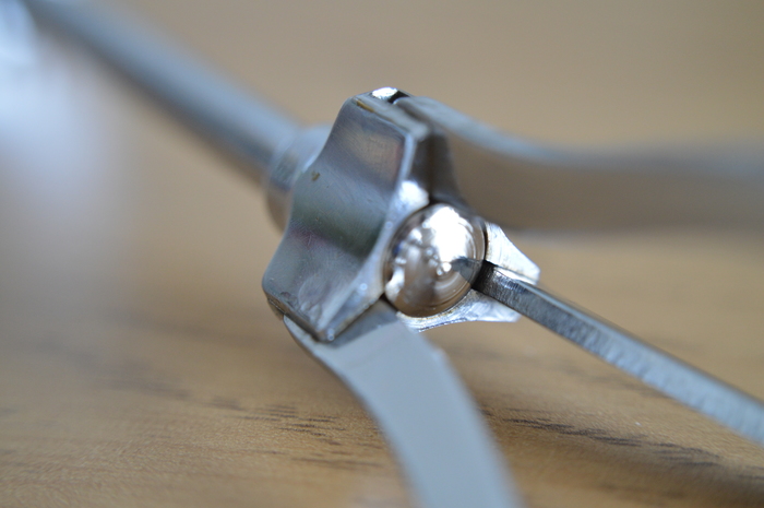 Сделан из нержавеющей стали, хотя заметно, что пружина, скрытая внутри, ржавеет. Сделан этот инструмент в Швеции, но не совсем ясно когда.