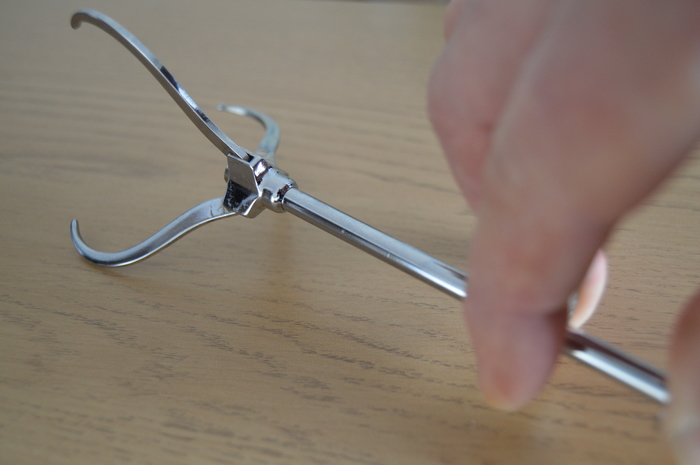 Давно уже (несколько лет назад) в моих руках оказалась старая забавная вещица. Я предполагаю, что это щипчики для вылавливания из маринада острых и солёных деликатесов, огурчиков, грибочков. Жена же, в свою очередь, предполагает, что она бы использовала бы этот инструмент для захвата маленьких пирожных и других мелких кулинарных изделий.