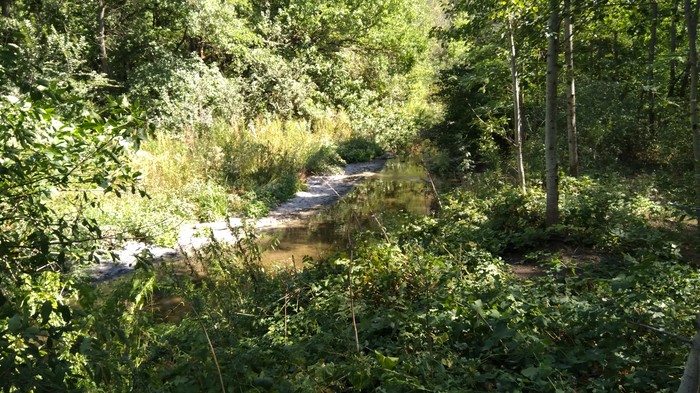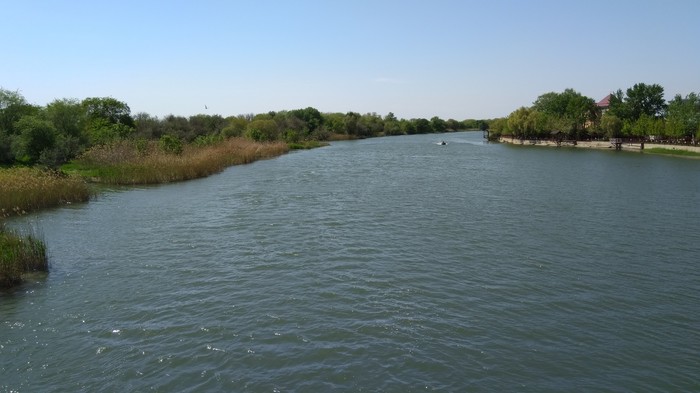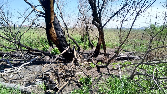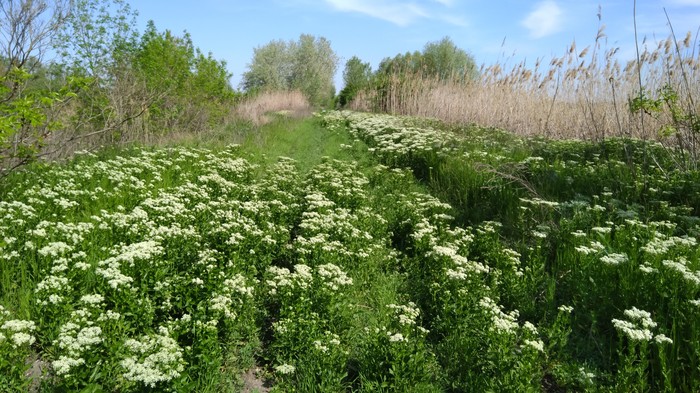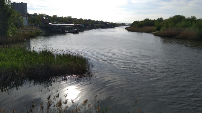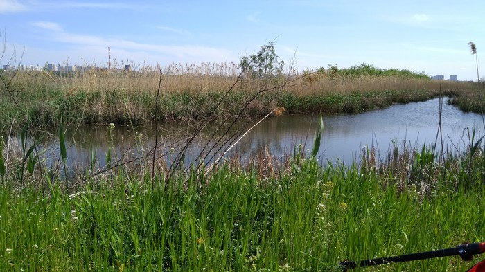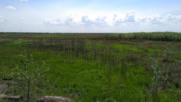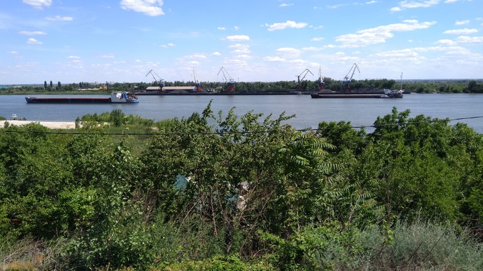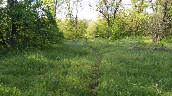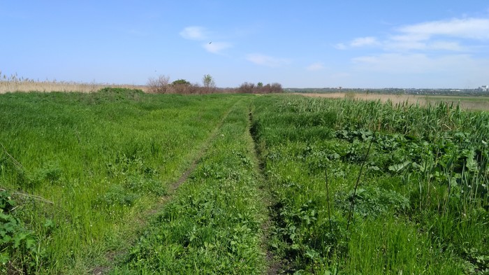 Отдохнув, продолжаю путь. Дальше был отрезок, на который я возлагал большие надежды в плане красивого вида - думал, буду идти и смотреть на Дон. Но увы, хорошо смотреть на него с высокого окна в поезде, с высоты человеческого роста мало что видно. Вот для примера: