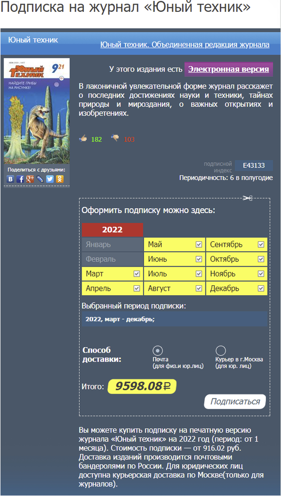 Ладно, над подпиской журнала "думай" надо подумать. А пока что посмотрю на Техника молодёжи хотя это уже не детский журнал - https://podpiska.pochta.ru/press/П9147