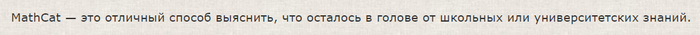 "Образовательно-развлекательный флешмоб" проводится с 29 ноября 2014 года - "Идея MathCat родилась в городе Саратове (Россия) в 2014 году.". Задания делятся на 4 уровня сложности: от самого простого белого, до самого сложного красного.