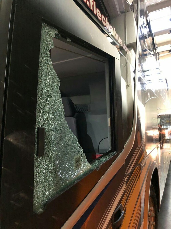 Полиция применила слезоточивый газ,который попал через разбитые стёкла в автобус.