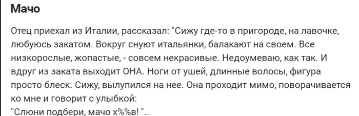 Так южные итальянки и северные это совершенно разная генеалогия. Южные низкорослые, чёрные, ну и вообще как в том посте. Ну, не знаю: кучерявые турки или как,с кипишной манерой поведения. Северная Италия - девушки уже совершенно другие: светлые, стройные и достаточно симпатичные. Я когда-то нагугливал научную работу по этим тиражам - это совершенно разные люди.
