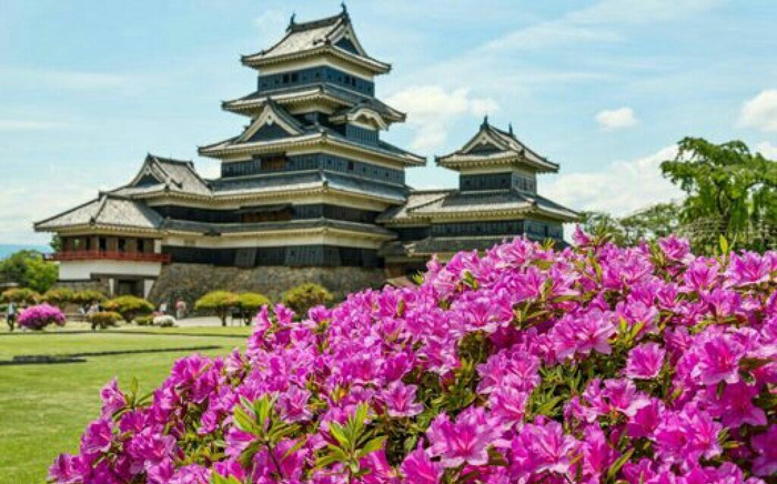 Замок Мацумото называют еще «замком Черного ворона» — за его черные стены и крыши 5 этажей, которые напоминают крылья птицы. Стоит он у берегов озера, в котором плавают белые лебеди, а вокруг расположился удивительный парк и сад хризантем. Как и в любом японском парке, на его территории растут сакуры и имеются небольшие, но красивые мостики через озеро.
