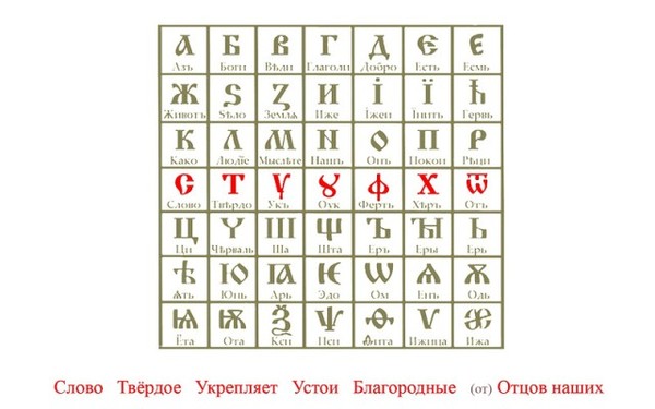 Русская азбука, которая была в обиходе вплоть до 1918 года, — это набор графических знаков, обозначающих смысловые ОБРАЗЫ (а не простые звуки).