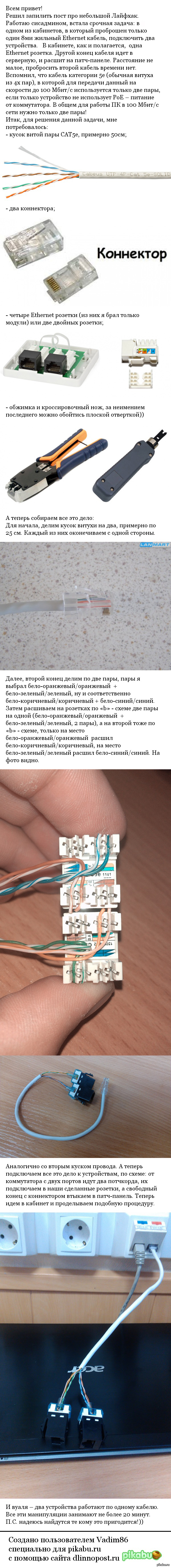 2 Vadim86 Лайфхак 10 лет назад Как подключить два ПК к сети, по одному ethernet проводу. Показать полностью 1 [моё] Лайфхак Витая пара Подключение Длиннопост