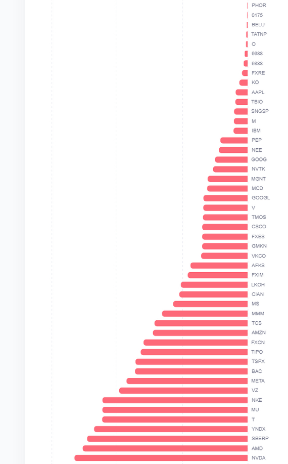 Самый топ по просадке возглавили NVIDIA, AMD и SBER c Яндексом.