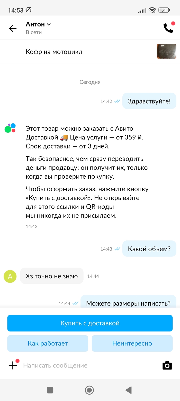 Нашел отличный с виду вариант, цена сразу же заинтересовала, вижу Авито доставка включена, до меня от 149руб, ну не подарок ли? (подумал я) кхе-кхе наивный.
