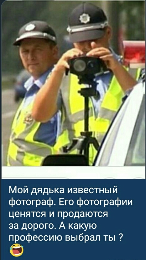 7 Vadly Профессия фотограф 6 лет назад Показать полностью 1 Фотограф ГАИ Профессия Юмор Картинка с текстом