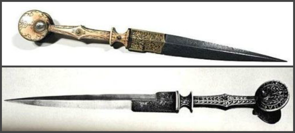 Вообще «ушастое» оружие было давно распространено в регионе Восточном регионе. А с четырнадцатого по шестнадцатый века «ушастые рукояти» кинжалов встречаются в Италии и Испании.