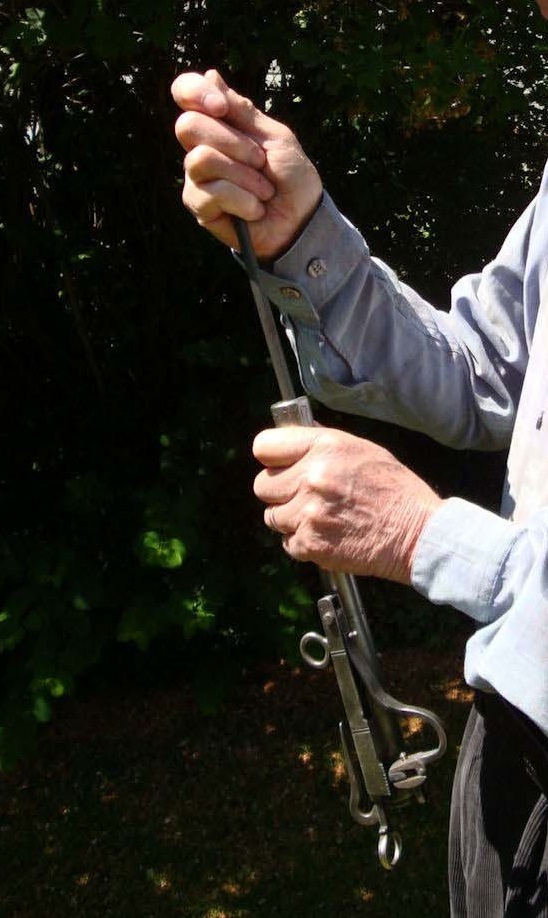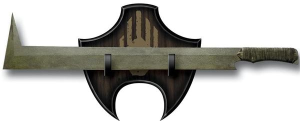 Рукоять имела особую форму, дабы исключить выскальзывание из руки при сильном рубящем ударе. Она охватывала всю нижнюю часть ладони и оканчивалась своеобразным расширением, называемым «уши».