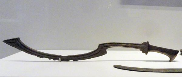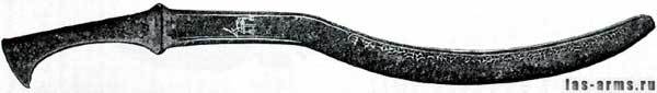 Здесь существует большое разнообразие форм клинка. Попадаются экземпляры с практически прямым клинком и очень изогнутым. Клинки этого типа достигают самых больших размеров и могут быть от пятидесяти до семидесяти пяти сантиметров в длину. На некоторых клинках встречаются долы и т-образные обухи.