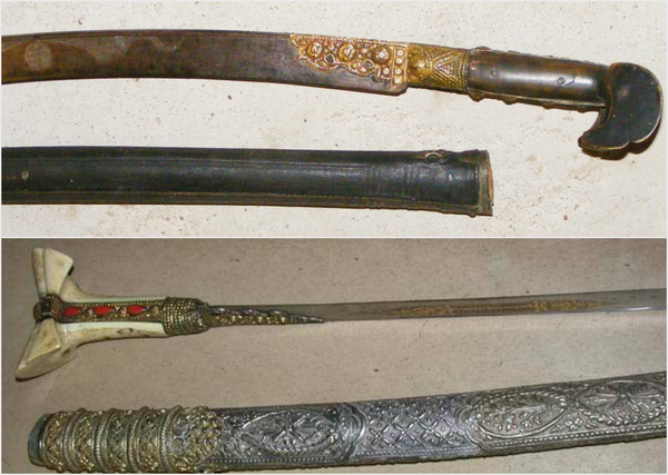 Имеющие более круглые формы и ножны из металла, меди или серебра, украшенные чеканкой, кораллами или драгоценными камнями, принадлежат мастерам-оружейникам из греческих провинций.