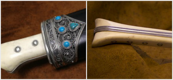 Рукояти выполняются в основном из рога или кости и декорируются серебром, оловом или медью. Форма рукояти была очень разнообразна и не имела единого типа монтирования.