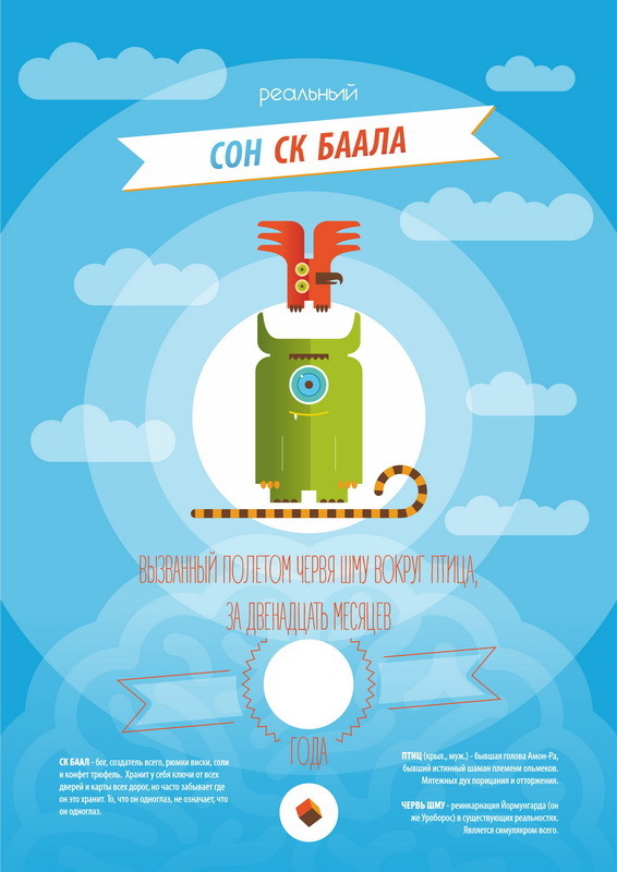 Как-то раз гуляли Птиц и червяк Шму по Неоднозначному дереву и встретили Ск. Баала. Ск. Баал висел на одной из больших веток закрепив себя за шею веревкой и отбросив правую руку и глаз. Рука и глаз валялись неподалеку и уже начинали попахивать. Птиц и Шму очень удивились такому времяпрепровождению их друга. Птиц спросил Баала:
