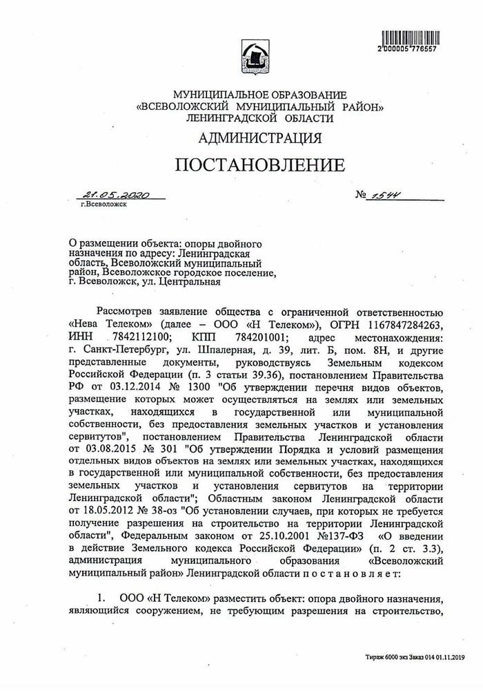 Каким-то образом был добыт ОРИГИНАЛ постановления главы ада Всеволожского района.