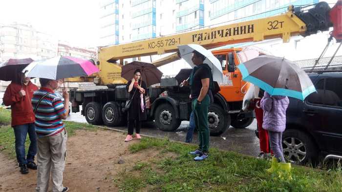 Работы сразу прекратились, кран уехал в неизвестном направлении, а на освободившиеся парковочные места немедленно встали автомобили жильцов.