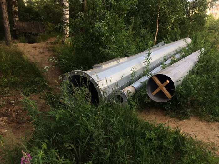 Естественно, мгновенно нашлись сведущие люди, которые сразу определили, что это не мангальчик, а фундамент-кессон опоры, которая пока скромно валяется в крапивке.