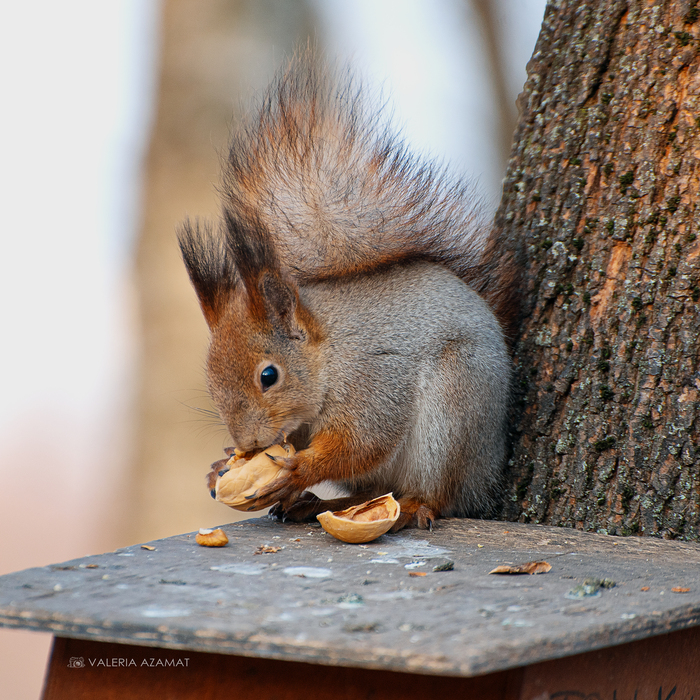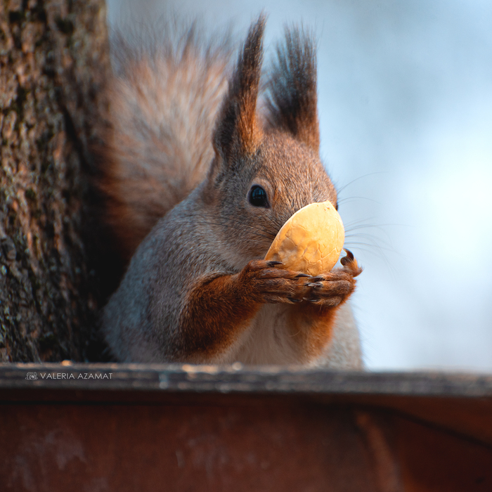 И орех, что в лапках стойко,