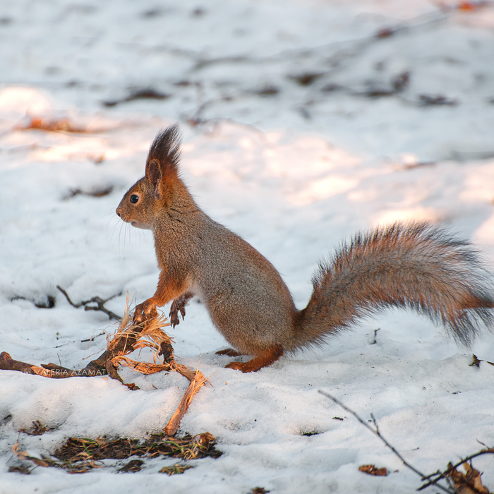 Держит белочка сама.