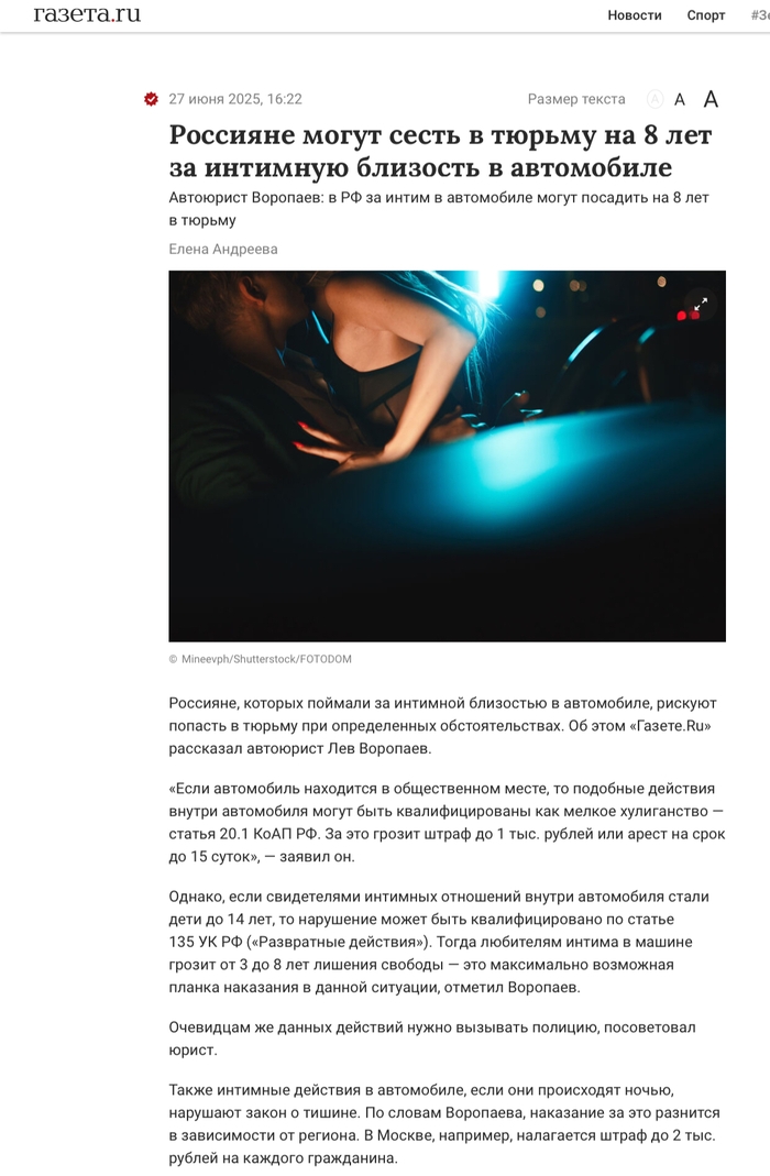 Штрафы за занятие сексом в автомобиле, вплоть до уголовки