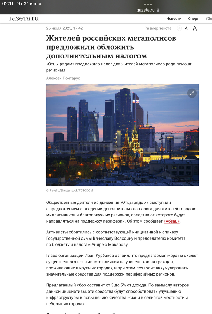 1. Обложить всех жителей мегаполисов (речь о 15 городах-миллионниках) 3-5% налогом на развитие сел и малых региональных городов. Дескать, на столько жируют эти жители, что в своих доходах не усмотрят отсутствие пресловутых процентов.