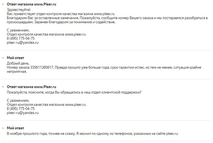 Вас приветствует отдел контроля качества магазина www.pleer.ru