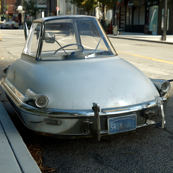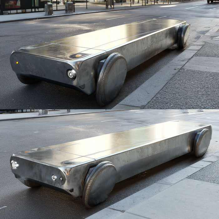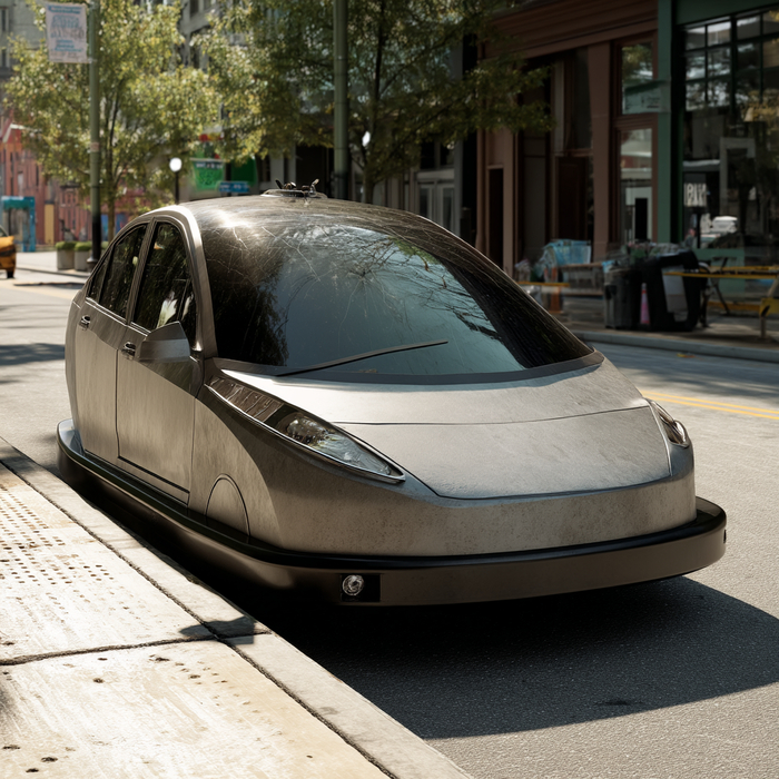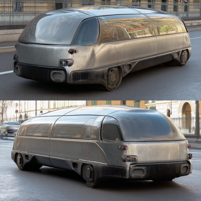 Ну и правда, Midjourney 7 оказалась очень зависимой от стереотипов. Подобрать запрос удалось не сразу. И что самое любопытное - выигрышной оказалась стратегия отказаться от обобщений на слово "автомобиль" И то - часть таких запросов все равно рождали чтото вполне автомобильное с колесами. Но идеальный, лишенный автомобильности совсем - выдал вот это