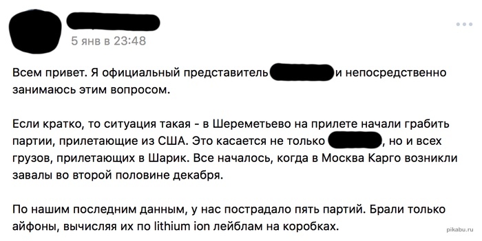 Закон отводит на эту процедуру 12 часов, тут - серьезное непопадание. Груз по факту попал в очередной «Москва Карговский» коллапс, на который Шереметьевская таможня год за годом закрывает глаза. Но если по закону - это протокол, причем составляется он на… авиаперевозчика Hainan Airlines. Потому что именно авиакомпания отвечает за гремлинов, которых она подряжает обслуживать свой рейс.