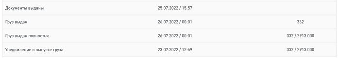 Итак, первое нарушение - прилетевший 21 июля в 10:13 груз даже по документам принят на склад только 22 июля в 03:03.