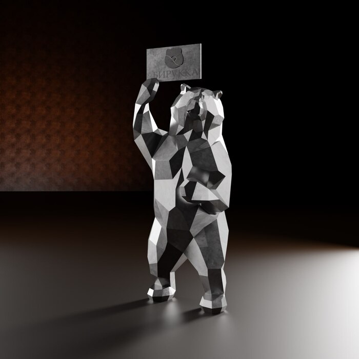 Как обычно, все начинается с макета. По задумке заказчика, медведь должен держать табличку с надписью.