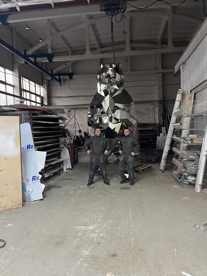 По большому счету этот красавец - наше первые объект такого обьема и масштаба, были сложности с зеркальной нержавейкой, были сложности с полировкой такого большого объема за очень короткий срок.. но мы справились.