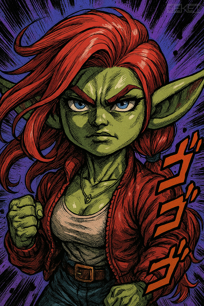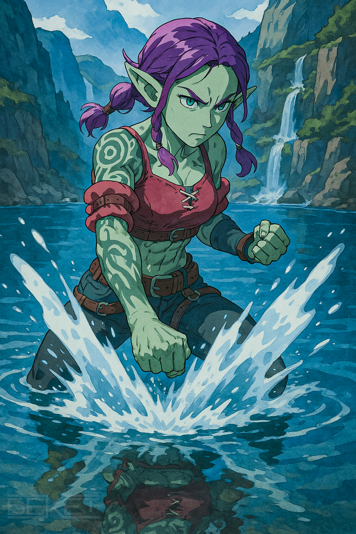 Дисклеймер - это альтернативная версия Туски-воина (подкласс "Боевой Монах") из параллельной вселенной, поэтому у неё стальной пресс, нордический спокойный характер и другая рисовка и татуировки.