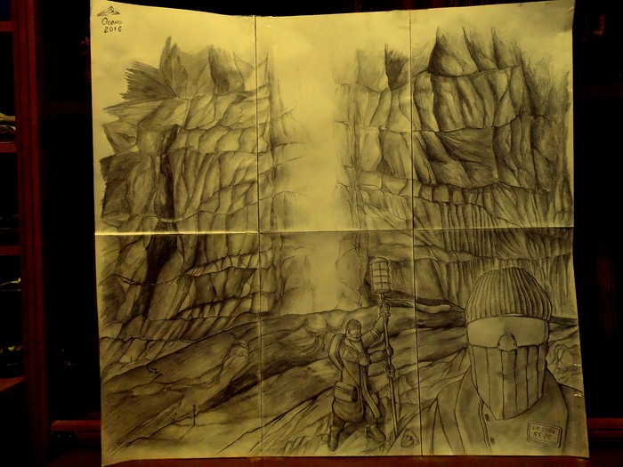 Вот работа на которую у меня в своё время ушло куча времени. Предполагалось сделать нечто эпичное, создающее чувство простора и мощи. Когда всё только начиналось, я ещё не представлял, что это чудовище разрастётся до монструозного А4х6.