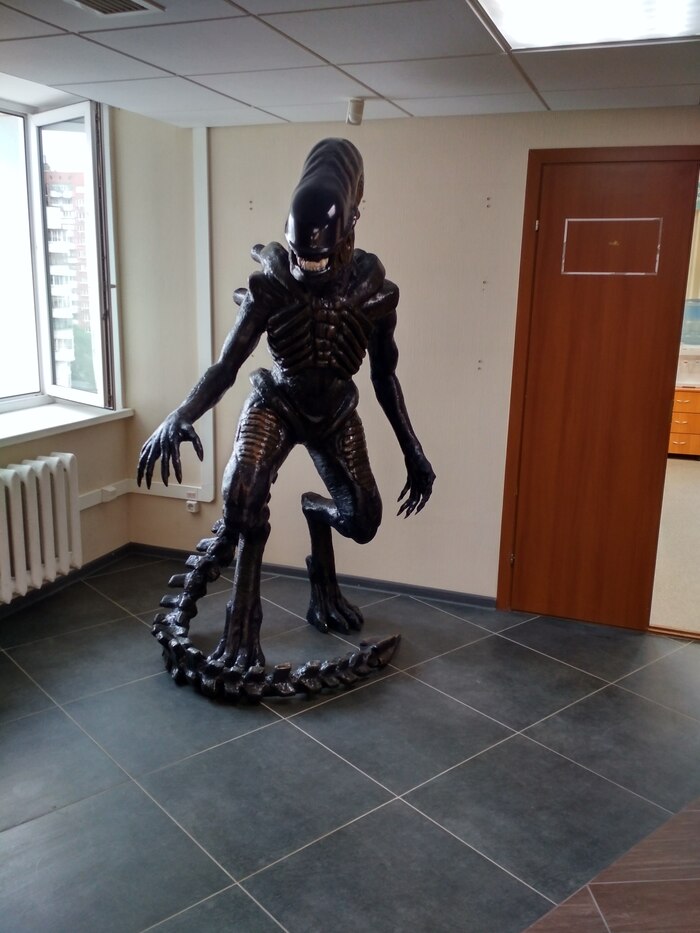 на одном из этажей была фирма по изготовлению детских площадок, делали изделия из пластика, и в один момент решили расширить производство и начали для эксперимента делать различные статуи и прочее, и вот по рассказу охранника произошёл очень забавный случай, дело было весной темнело еще рано он пришел на ночную смену, когда все ушли он пошел на обход, по зданию горело только дежурное освещение, и вот на этаже этой фирмы он видит в темноте в слабом освещении от окна силуэт, первая его мысль была что кто-то припозднился он решил подойти к "припозднившемуся" а когда понял что на него смотрит чуть не поймал сердечный приступ.
