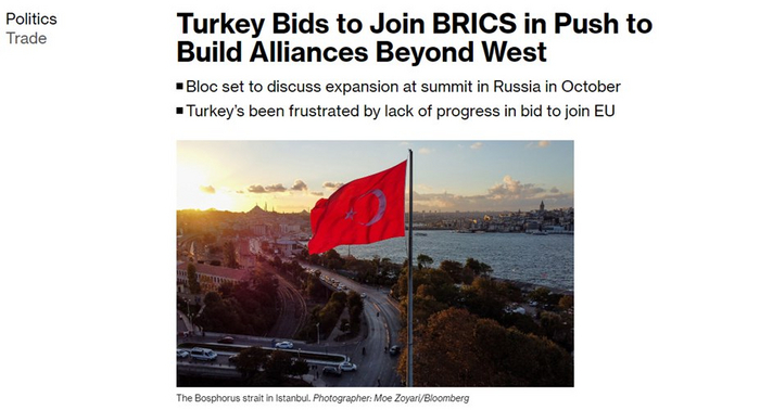 Заявку о вступлении Турции в БРИКС воспринимать иначе как попытку выбить из американцев более удобные для себя условия воспринимать не стоит. Однако приглашение на саммит БРИКС в Казани Эрдоган принял. Остаётся ждать и следить за новостями.