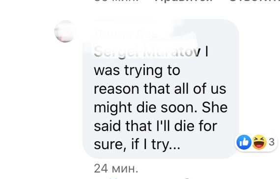 «Я пытался ее образумить, что мы возможно и так скоро все умрем. На что она ответила, если я попытаюсь, я умру в любом случае..»