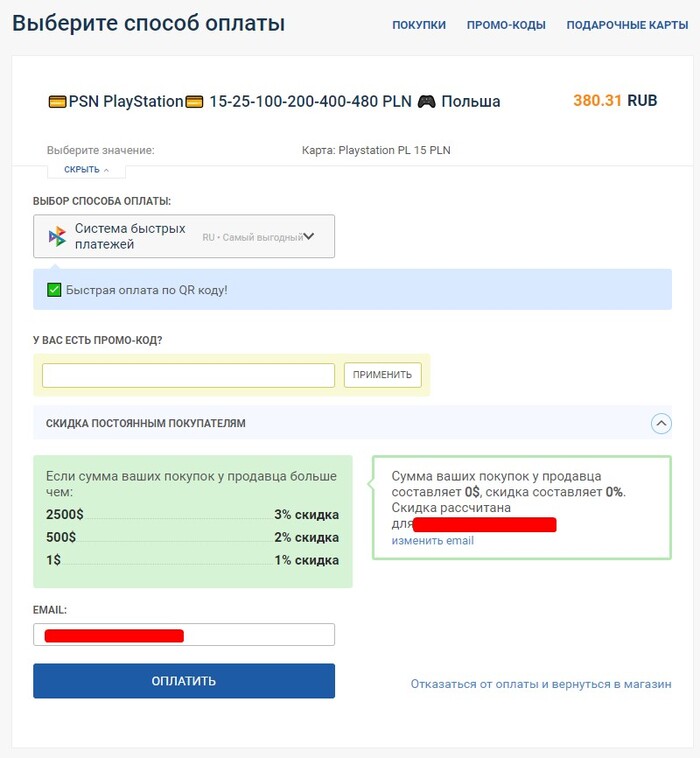 - И аналогично предыдущему маркету выбираем платежную систему и вводим Email.