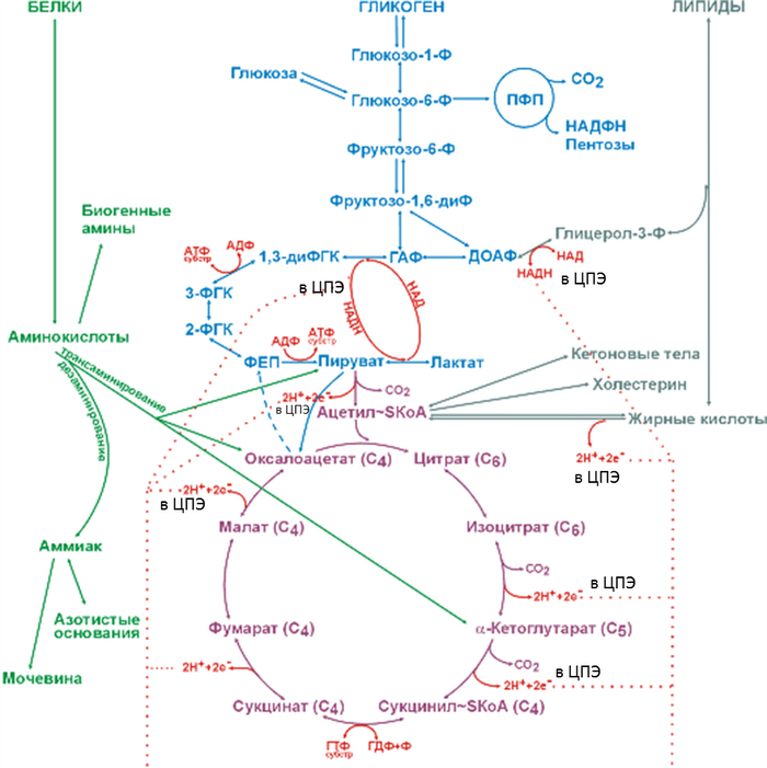 Получается, что большая часть съеденной нами органики сжигается в наших же клетках для запасания энергии в молекулы АТФ, но и это невозможно сделать без колоссальных потерь. Огромная доля энергии, выделяемая при окислении органических веществ, рассеивается в виде тепла и не запасается. А вот сами атомы углерода, составляющие основу органических соединений, покидают тело с выдохами в молекулах углекислого газа - CO2.