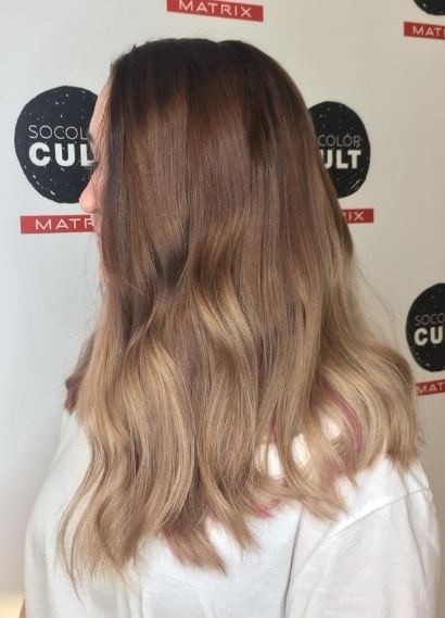 2. Плавный переход от тёмного к светлому (от 6 уровня до 10),а также скрытое окрашивание, фиолетовая прядь