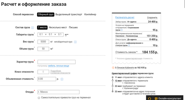 Нужно мне было отправить груз из Белоруссии в Калининград.