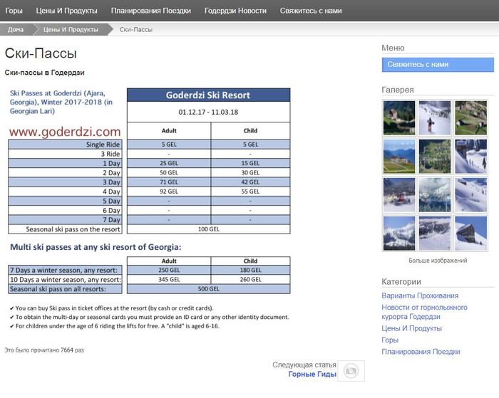 Кататься планируем на Годердзи. Цены на оф сайте на аренду снаряжения, ски пасс: