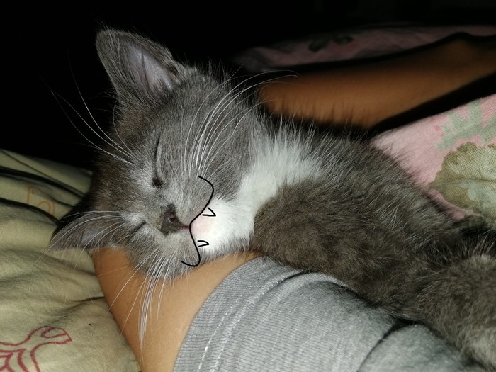 А ещё он мурчит так звонко-звонко, как трактор, даже сквозь сон слышно, когда он отдельно спит.