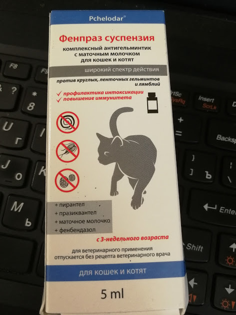 Утром субботы, мы также увидели перед собой здорового Сёмку, который кушал из своей мисочки, а после был занят своими кошачьими делами. Решили, что кот здоров ( ну и дебилы мы, конечно), хотя по внешнему виду он был весел. В этот день мы купили ему в ветаптеке Фенпраз суспензию (фото приложу), чтобы вывести паразитов, ошейник от блох, чисто для прогулок, мало ли какие там в траве кузнечики и букашки скачут и вкусный паштетик, который кот с удовольствием съел вечером после прогулки
