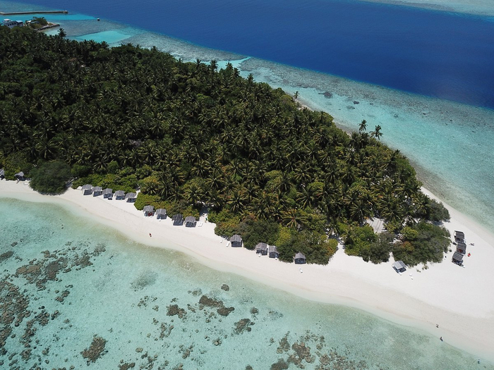 Остров покрыт пальмовыми джунглями практически на 80% (отличное место укрыться от солнца), остальное пару отелей и лазурный берег. Местных жителей человек 50-70, в основном обсуживающий персонал. Удаленность от столицы Мале 75 км.